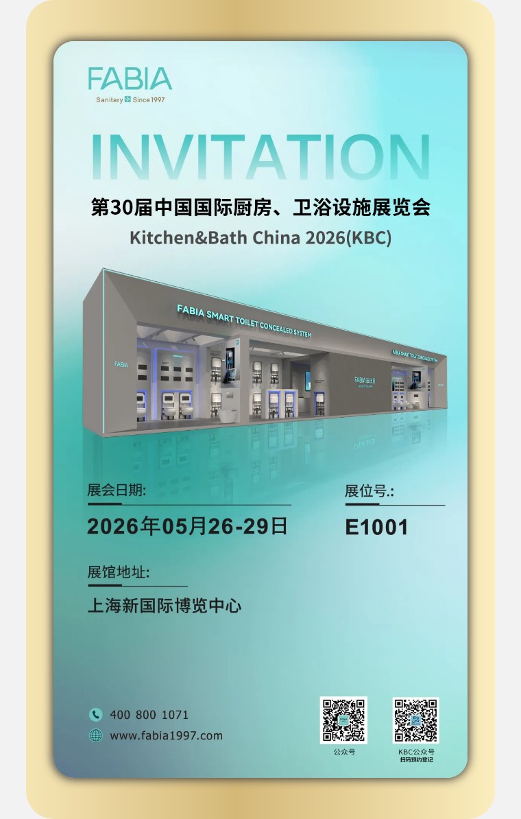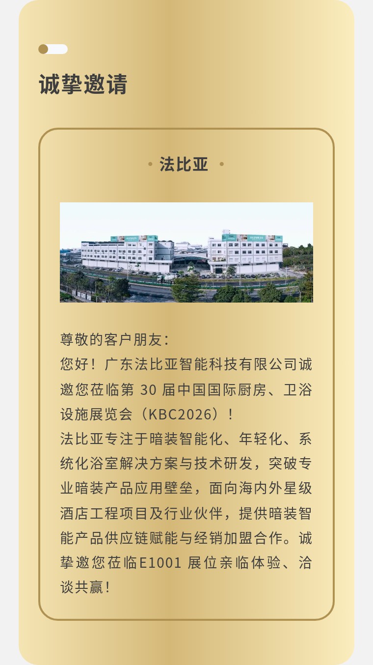 广东法比亚智能科技有限公司诚邀您莅临第 30 届中国国际厨房、卫浴设施展览会(KBC2026)!